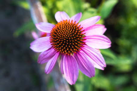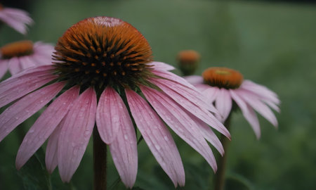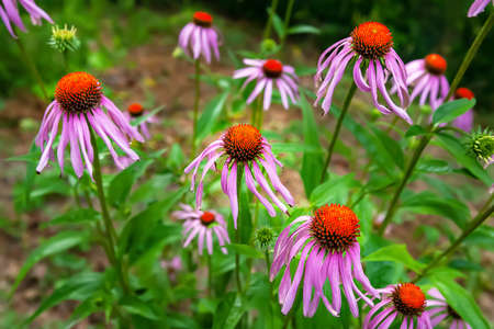 Echinacea flowers. Beautiful large flowers of Echinacea Purpurea on a blurred background with bokeh effect. Garden summer flowers. Selective soft focus. Floral background.