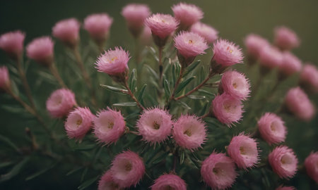 close-up of eucalyptus flower with dew drops on the petals, created with generative ai