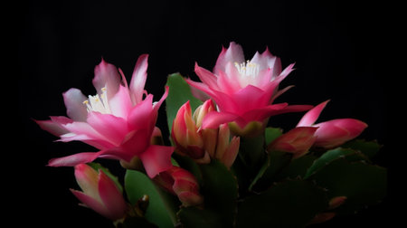 Generative AI : Hatiora rosea or Rose Easter Cactus succulent plant pink flowers blooming