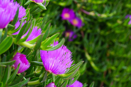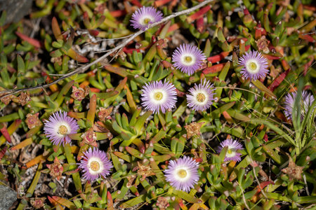 Purple vygies (Mesembryanthemums) growing in Table Mountain National Park, Cape Peninsula, South Africa.