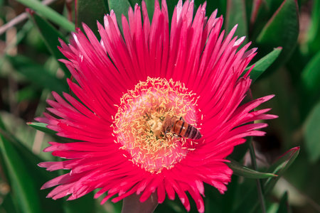 Hottentot-fig ice plant (Carpobrotus edulis) deep magenta flowers
