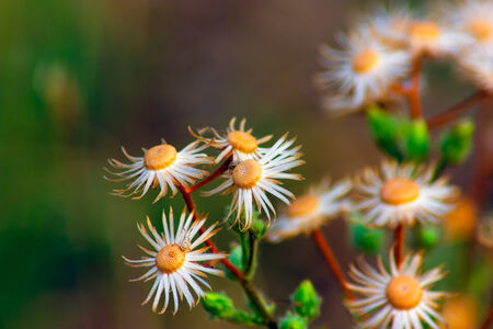 White flowers wilted grass on a background of nature