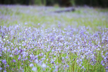 The view of small blue flowers in bloom, flowers background.