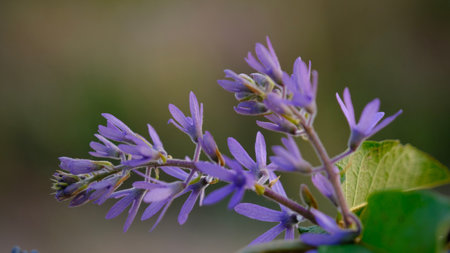 Selective focus in bloom flower Petrea volubilis, commonly known as purple wreath, queen's wreath or sandpaper vine.