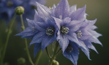 Close-up of blue flowers with raindrops on the petals.