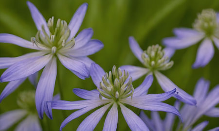 Close up of a row of camassia flowers in bloom
