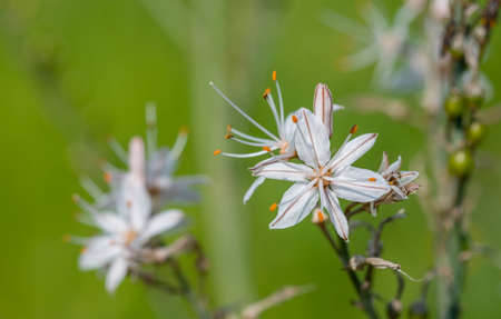 White Asphodel or Asphodelus Flowers on green meadow