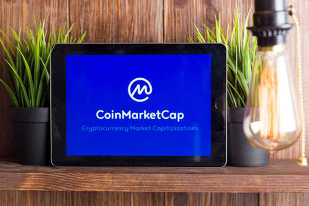 Tula Russia 16.01.20 CoinMarketCap on the tablet computer screen isolated.