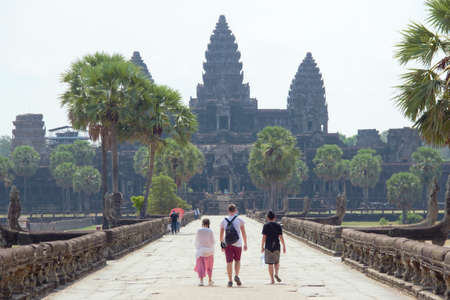 Tourists at the iconic West Gate of Angkor Wat - Siem Reap, Cambodia