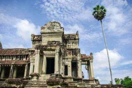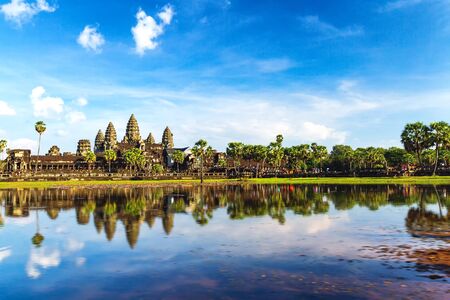 Angkor Wat, part of Khmer temple complex, popular among tourists ancient landmark and place of worship in Southeast Asia. Siem Reap, Cambodia.