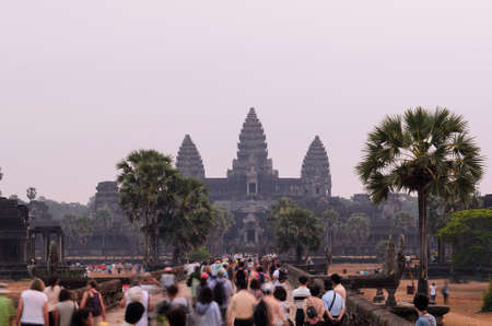 people walking up to angkor wat in cambodia siem reap