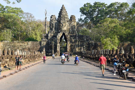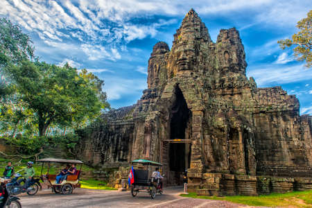 Siem Reap, Cambodia - October 05 2016: The Bayon gate of Angkor Thom the ancient Khmer empire in Siem Reap, Cambodia.