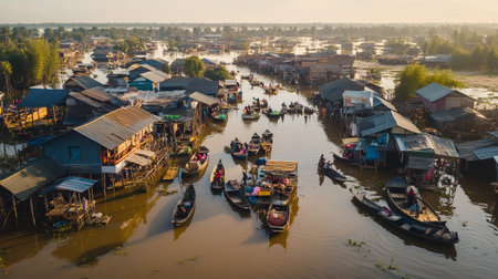 Aerial view of floating market in Vietnam