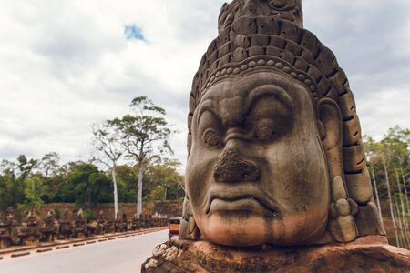 Siem Reap, Cambodia - 12 January 2018: Sculptures of demons at south gate to Angkor Thom in Cambodia.