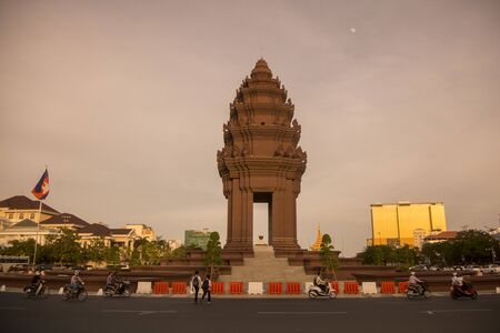 the Independence Monument at the Sihanouk Bouelvard in the city of Phnom Penh of Cambodia. Cambodia, Phnom Penh, November, 2017,