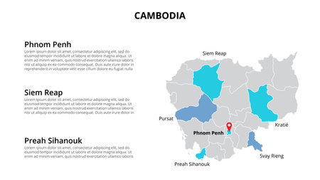 Cambodia vector map infographic template divided by states, regions or provinces. Slide presentation