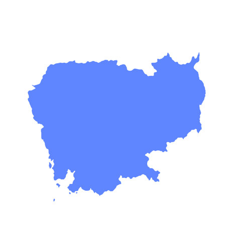Cambodia area map in the Azimuthal Equidistant projection. shapes only - land/ocean mask. Overlay with clean background without borders