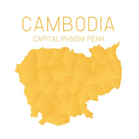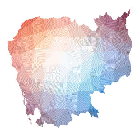 Map of Cambodia. Low poly illustration of the country. Geometric design with stripes. Technology, internet, network concept. Vector illustration.