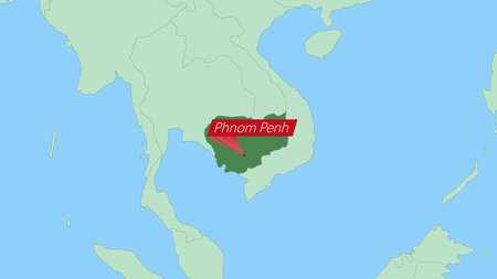 Cambodia, Phnom Penh - capital city, pinned on political map
