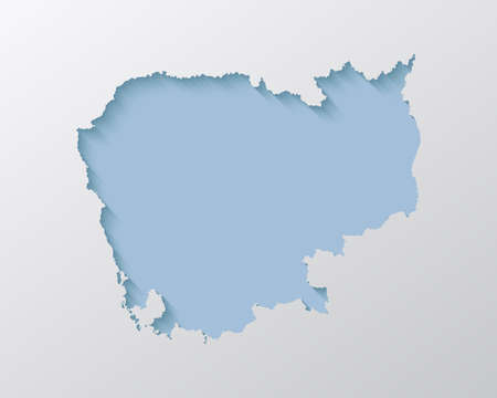 Cambodia - white 3D silhouette map of country area with dropped shadow on grey background. Simple flat vector illustration