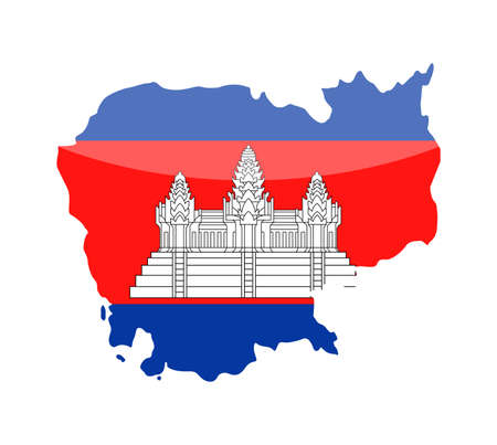 Cambodia - Asia Countries Map and Flag Icon Vector Logo Template Illustration Design. Vector EPS 10.