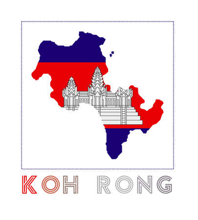 Map of Koh Rong with island name and flag. Modern vector illustration.
