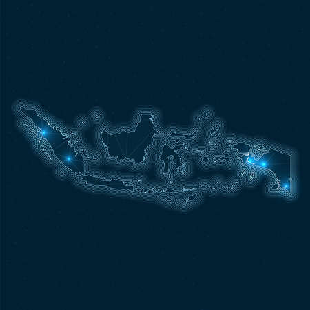 Indonesia network map. Abstract geometric map of the country. Digital connections and telecommunication design. Glowing internet network. Cool vector illustration.
