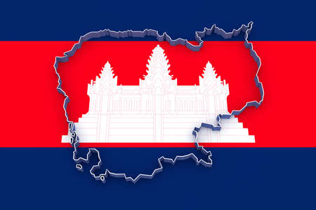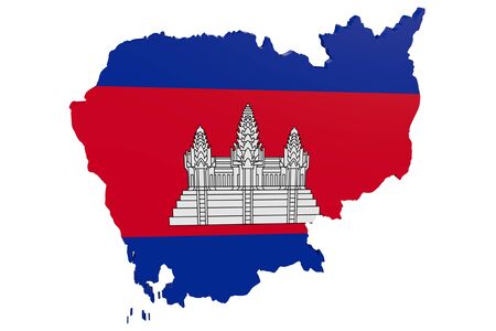Cambodia Map Cambodia Flag Shaded relief Color Height map on white Background 3d illustration