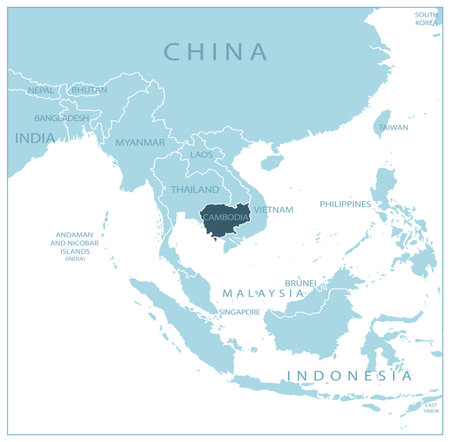Cambodia - blue map with neighboring countries and names. vector illustration