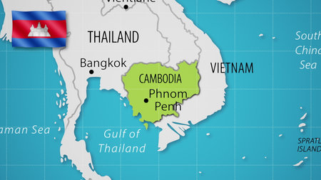Cambodia, Phnom Penn - national flag pinned on political map - 3D illustration