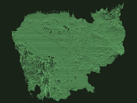 Tactical Military Emerald 3D Topography Map of Asian Country of Cambodia