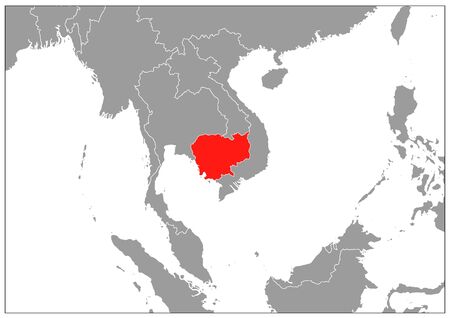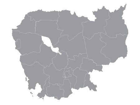 Detailed vector map Cambodia divided on regions isolated on background. Template Asia country for pattern, infographic, design, illustration. Concept outline of administrative divisions state Cambodia