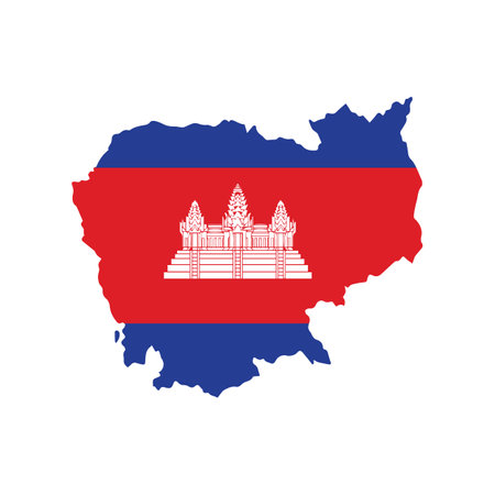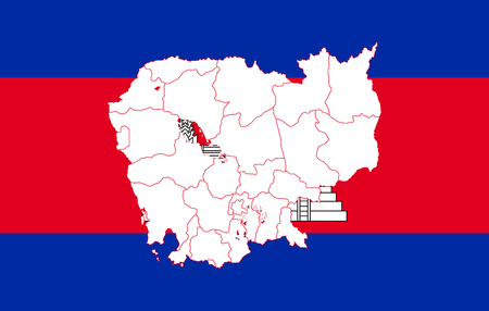 Cambodia Flag with Map Brush Stroke, Clipping Path