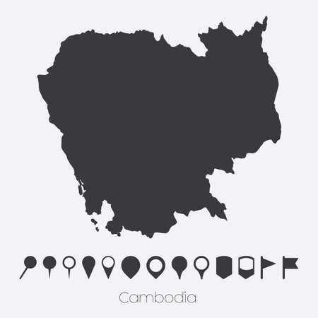 Map of Cambodia, sign silhouette. World Map Globe. Vector Illustration isolated on white background. Asian continent