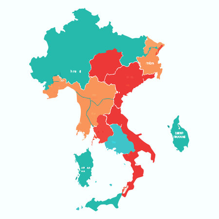Vector Blank Map of Thailand with Regional Boundaries and Geographic Territories