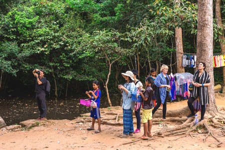 SIEM REAP, CAMBODIA - MAY 2 : Unidentified boys of Cambodian at kabal spean on May 2, 2015 in Siem Reap, Cambodia