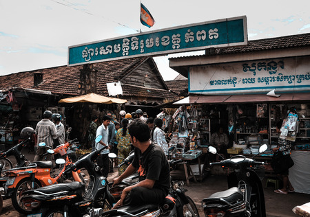 Kampot, Cambodia - Dec 31, 2011. Many people at rural market in Kampot, Cambodia. Kampot is a small town in south-east Cambodia, and is a gateway to Bokor National Park.