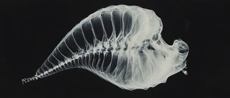 X-ray revealing intricate spiral structure and hidden chambers of a seashell