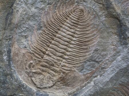 exploration of trilobite beetle fossil embedded in stone Rock