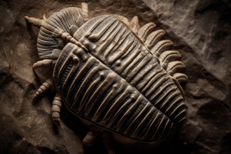 close-up of a trilobite fossil embedded in rock, created with generative ai
