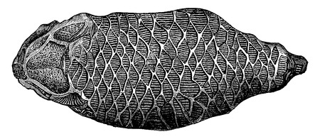 Ancient shell macro, fossilized seashell as grunge background.