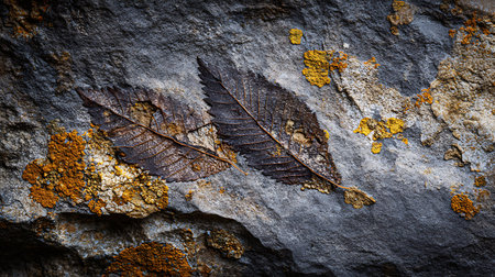 Detailed macro shot of fossil imprints on a weathered limestone rock, capturing the texture and timeless essence of Earth's ancient past.