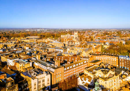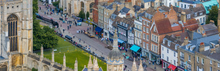 Aerial street view of the downtown at Cambrdige, United Kingdom