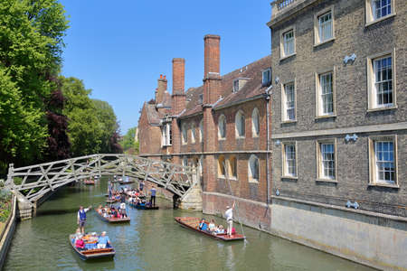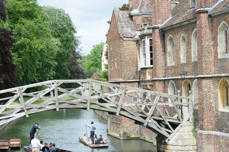 Cambridge England, United Kingdom -May 20, 2016: Punters on Cam under mathematical bridge