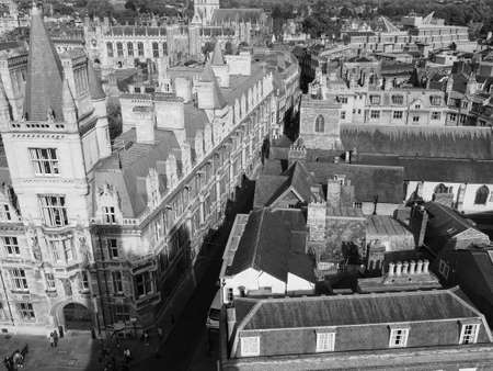 CAMBRIDGE, UK - CIRCA OCTOBER 2018: Aerial view of the city in black and white