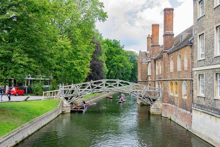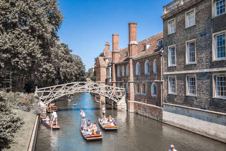 Cambridge, UK - July 16, 2021:River Cam and old colleges of Cambridge university