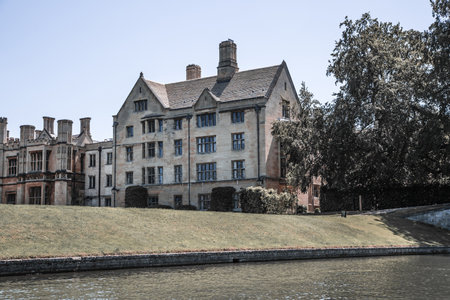 Cambridge, UK - July 16, 2021: River Cam and River Court, St John's College