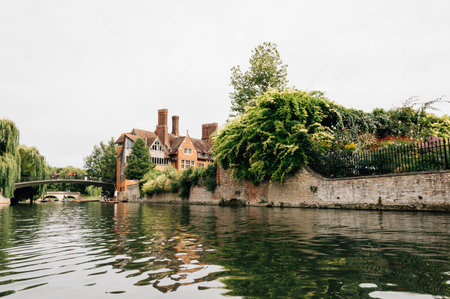 Cambridge, UK - July 16, 2021: River Cam and old buildings of Cambridge university