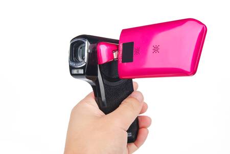 Vintage video camera isolated on white background, above view and with copy space for text or other desing