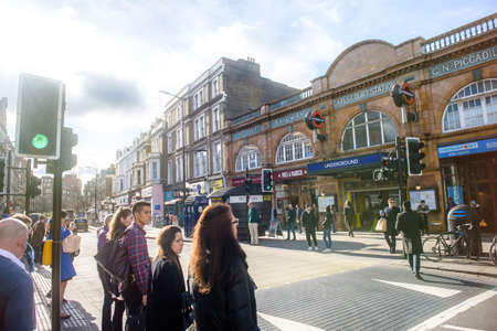 People waiting to cross the street to enter the Earls Court Station Railway